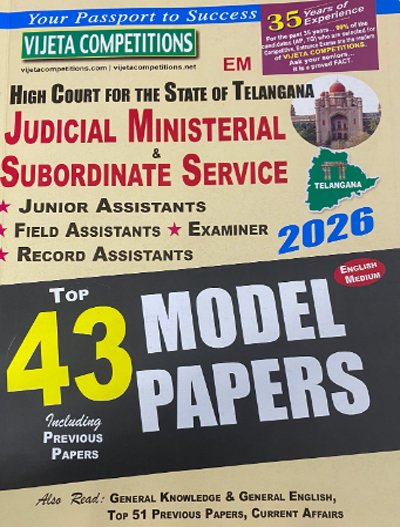 High Court for the State of Telangana Judicial Ministerial & Subordinate Service 2026 Junior, Field & Record Assistants Top 43 Model Papers - Vijeta Competitions - English Medium