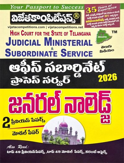 Telangana High Court Judicial Ministerial Subordinate Service and Office Subordinate Process Server General Knowledge [Telugu Medium] Vijetha Competitions